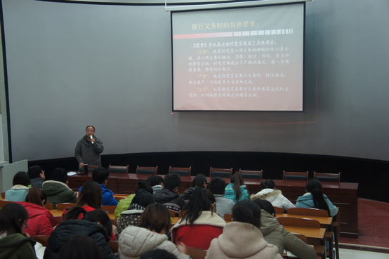 11月29日,懂球体育分党校2013年入党积极分子培训班开班。懂球体育副经理雷金瑞副教授为全院208名入党积极分子上了第一堂课《党员的权利与义务》。