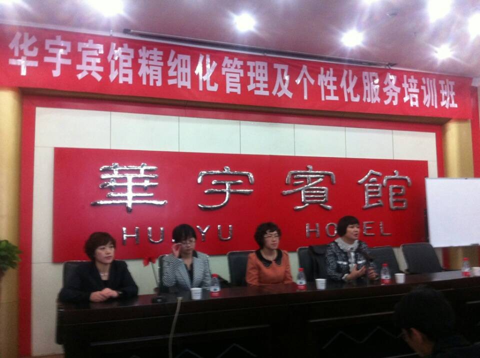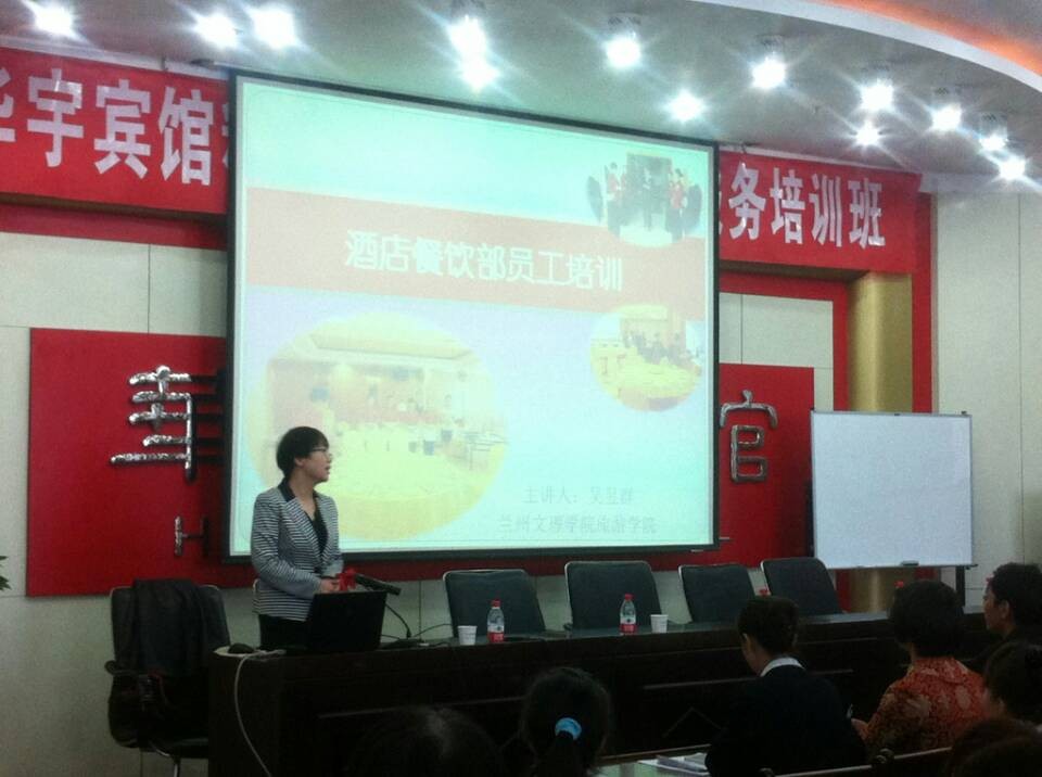 2014年4月9日至4月13日,懂球体育展丽蕊、潘静、吴昱群三位老师在兰州华宇酒店对酒店全体员工进行了培训。培训着重从酒店从业人员职业道德建设、服务接待礼仪、操作技能提升、管理实务等方面展开,累计培训48课时,参训70余人。培训中几位老师采用多种授课方式,将理论教学与实际操作相结合,取得了主办方和学员的一致好评。