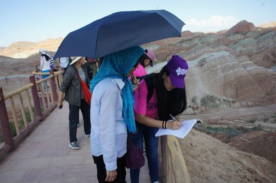 在此次调研过程中,各小分队的同学们严格按照调查问卷的填写要求,用通俗的语言给参与调查的游客们不厌其烦地讲解问卷内容,指导游客顺利完成问卷,得到了省内外游客的高度赞誉。满意度调研为全面提升我省旅游综合服务质量,有针对性地改善旅游产业发展环境,提升甘肃旅游形象具有重要意义。