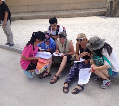 在调研过程中,调查队员们克服高温等困难,深入景区、酒店、农家乐、交通岗发放问卷,进行义务讲解。尽管有很多游客拒填问卷,但调查队员依旧热情不减,不厌其烦的向他们解释本次调查的意义和问卷的内容。有的队员对不识汉字的外国游客逐题解释,帮助他们填写问卷;还有的队员对问卷填写过程中想放弃的游客穷追不舍,想尽办法协助游客完成问卷,这些场景在本次调研过程中屡见不鲜。正是凭借着这种吃苦耐劳、锲而不舍的精神,除个别调研小分队受极端天气影响延长了调研时间外,绝大多数调研小分队都在预定时间内如期完成了调研任务。同时,很多游客也针对甘肃各地旅游业的发展情况提出了有价值的意见和建议,这将对甘肃旅游业的发展起到积极作用。