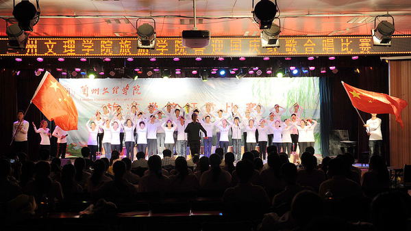 晚上7:30,萃文厅灯火璀璨,座无虚席。一组青春洋溢的红歌串烧拉开了比赛的帷幕,懂球体育各年级12个班级合唱团依次登场。参赛曲目中,既有传唱几十年的红色经典,如《映山红》《保卫黄河》《翻身农奴把歌唱》《歌唱祖国》等,也有新时代的祖国颂歌,如《国家》《走向复兴》《今天是你的生日》《祖国不会忘记》《走进新时代》等等。精心的编排、整齐的服装、昂扬的精神、嘹亮的歌声,同学们在台上的一举一动无不显示出各班同学团结一心、积极向上的精神风貌,体现出旅院学子热爱祖国的赤子之心。比赛过程中掌声不断,气氛热烈,舞动的国旗更是将气氛推向高潮,让在场的每个人都心潮澎湃,爱国之情油然而生。最终,2014级景区开发与管理班以一曲《国家》赢得本次比赛的一等奖。晚会在男女声合唱《天籁之爱》中落下帷幕。