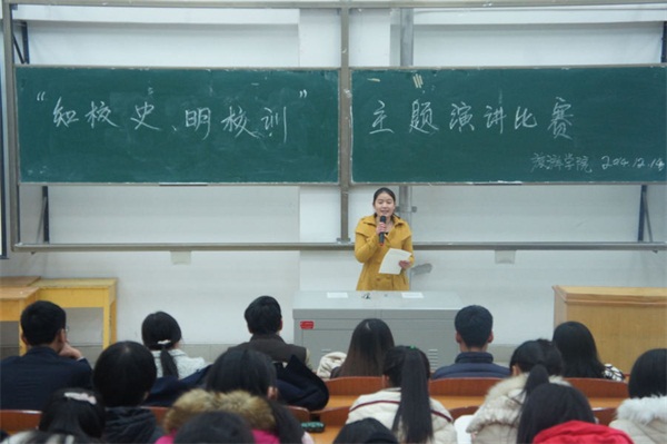 12月14日晚,懂球体育 “知校史,明校训”主题演讲比赛在综合楼407成功举办,懂球体育2014级近300名员工观看了比赛。