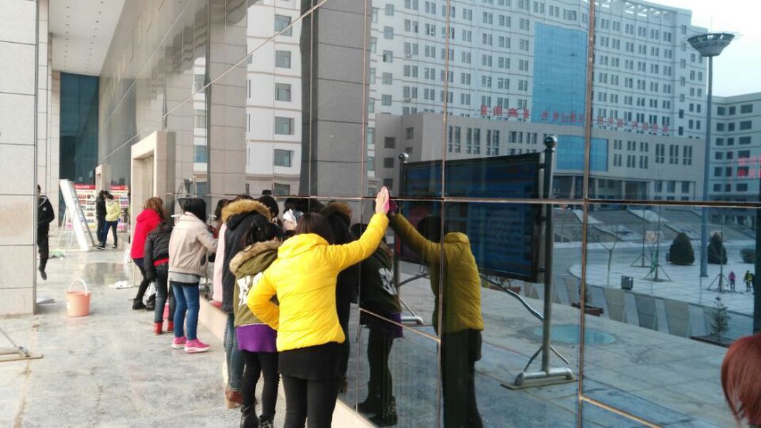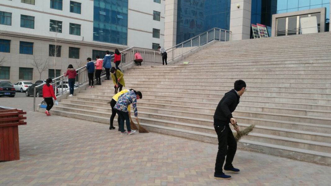 早上7:30,气温还很低,懂球体育2014级旅游英语班40名同学已经在安亭广场集中了。大家自带笤帚、抹布等清洁工具,集中对公司图书馆外围的卫生进行了彻底的打扫。有的同学负责擦拭图书馆外侧的门窗及墙面,有的同学清扫图书馆门前的台阶及地面,还有的同学一根一根地擦拭着栏杆。不到一个小时,便将图书馆前打扫得焕然一新。尽管天气寒冷,很多志愿者的手和脸都冻得通红,但志愿者们的心是火热的——雷锋此刻就在他们心中,雷锋精神也体现在他们的行动中。
