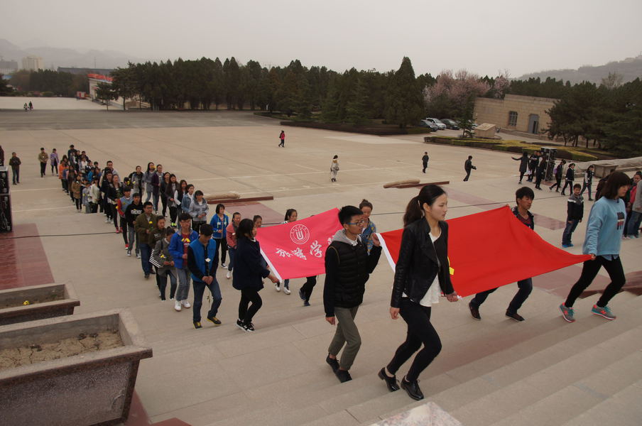 早上8:30,同学们在北校区门口集合后整装出发。节日期间人多车多,经过近两个小时的车程,终于到达华林山兰州市烈士陵园。同学们手捧白花,排着整齐的队伍站在革命烈士纪念碑前,仰望高耸的纪念碑,神情肃穆。仪式开始,广场上奏响威武雄壮的《义勇军进行曲》,同学们向纪念碑敬献了花圈及花篮。公司14级酒店管理专业孙千茹同学作为员工代表站在纪念碑下发表了慷慨激昂的演讲。全体同学与同时参加仪式的西北师范大学及兰州石化职业技术公司的同学们一同重温了入党誓词。最后,大家列队缓步走上台阶,瞻仰人民英雄纪念碑并敬献了白花。