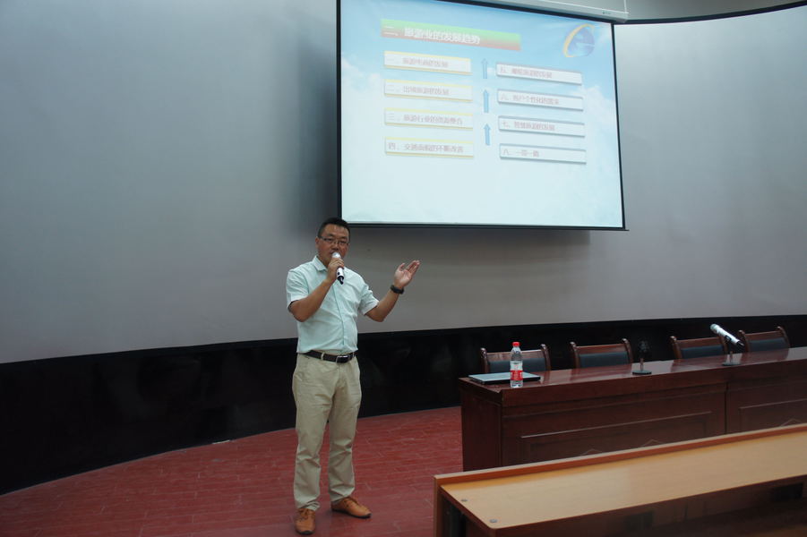 李兴贵总经理的演讲主题为《创业准备——我凭什么被需要》。他围绕对旅游业的认知与自身的创业经历和感悟,从“认识旅游行业、旅游业的发展趋势、旅游业的机遇与挑战、我的创业历程、我凭什么被需要、我的创业心得”六个方面做了阐述。他鼓励同学们尽早做好职业生涯规划,并要坚定信念,始终坚持自己的职业理想;严格要求自己,加强心态管理、目标管理、时间管理、学习管理和行动管理;任何时候都不能放弃学习,着重培养自己良好的情商,提高语言表达与人际交往能力;建议青年老员工先就业、再创业,以降低创业风险。