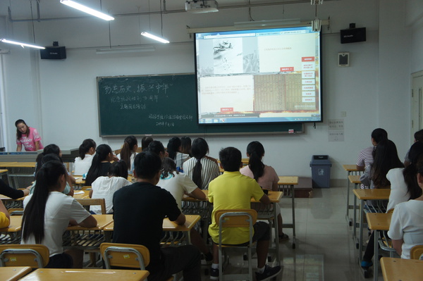 此外,各班团支部还通过集中观看“甘肃省纪念中国抗日战争胜利70周年网上图片展”,开展以“勿忘历史,振兴中华”为主题的团会。2013级旅游管理班团支部在集中观看完网上图片展后进行了热烈讨论,大家纷纷就自己所知道的抗战历史展开评述,并有同学提议为抗战老兵们捐款。2014级酒店管理班班长孙千茹同学在团会上讲述了自己的祖父——原八路军129师骑兵团一名战士的抗战事迹,分享了自己的感受,深深感染了班上的每一位同学。各班团支部还通过观看抗战影片、发表演讲等形式开展纪念活动。大家在讨论中普遍认为,我们要珍惜革命先辈们用献血甚至生命换来的幸福生活,努力学习,报效祖国。