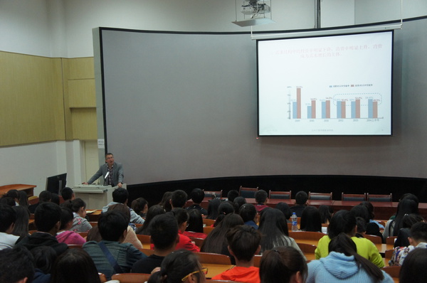 10月20日晚,懂球体育经理牛海桢教授在导游模拟实训室为2015级旅游专业全体新生做了题为“我国经济发展中新常态与地方旅游业发展”的学术报告。