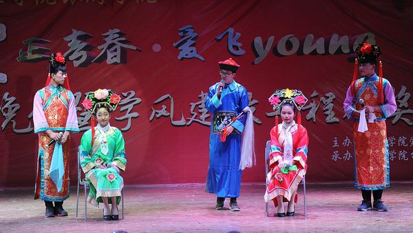 冬至之夜,萃文厅灯火辉煌,充满喜庆气氛。晚7:30,晚会由激情澎湃的摇滚歌曲串烧拉开序幕,歌唱、舞蹈、啦啦操、相声、小品悉数登场。啦啦操《Girlfriend》青春洋溢,动感十足。古典舞《咏春》《恋人心》婀娜多姿,柔美动人;韩舞《Shake it》热力四射,青春洋溢;街舞《Free souls》自由奔放,力度十足;舞蹈《万万没想到》滑稽搞笑,充满童趣。民谣弹唱《斑马斑马》浅唱低吟,唯美动听;藏族歌舞《贡布酒歌》长袖起舞,歌声悠扬;红歌合唱编排富有叙事性,慷慨激昂,振奋人心。相声《戏说乡音》在戏谑中告诉大家推广普通话的重要性;小品《感恩的心》贴近老员工活,引人深思;舞台剧《跪羊图》彰显孝道,感人至深;小品《青春偶像剧》《甄嬛后传》笑点频出,乐翻全场。空乘礼仪展示动作整齐,充满青春气息,展示了专业教学成果。整台晚会气氛热烈,节目异彩纷呈,让观众大饱眼福。