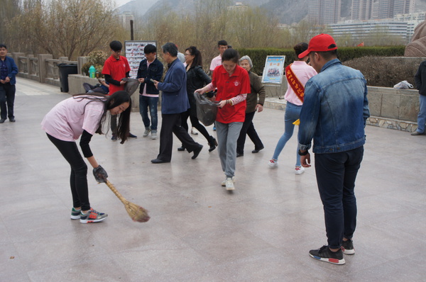 景区周边道路、草坪上烟头、纸屑、食品包装袋等垃圾很多,负责打扫的同学们一路捡拾,忙碌了一个多小时,让周围环境卫生大卫改观,并为产生垃圾的游客赠送塑料袋,赢得了市民们赞许的目光。