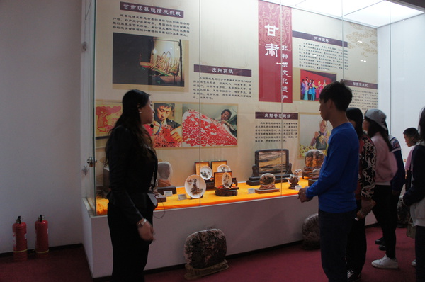 特色中国甘肃馆位于兰州市南滨河路中段,馆内采用了大量的历史文献、文物、图片、雕塑,以及声、光、电等表现手法,全面展示甘肃的历史文化、特色特产、风土人情、旅游资源。甘肃馆发挥“淘宝网”的大品牌优势,打造线上商城的同时建设了别具特色的线下体验馆,是全国首个不用现金消费的特产大卖场。在整合了苦水玫瑰、兰州百合、陇药三宝、高原夏菜等传统优势产品后,又开发了丝路文化珠宝、河西葡萄酒、清真食品、非遗产品等新兴产业。同学们在讲解员的引导下进行了有序参观。琳琅满目的商品让大家深受震撼,感受到我省的物产丰富、文化深厚。