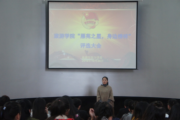 最后,分团委牛晓春老师做了总结,他对参加评选的13名同学的先进事迹表示赞赏,为公司能有这么多优秀的同学感到骄傲,希望这些同学能够再接再厉,取得更大的成绩,同时也希望他们大胆说出自己的故事,带动更多的同学共同进步;他同时要求全体员工干部要关心班级里的每一位同学,深入挖掘同学中的先进典型,打造“旅院之星”,树立“身边榜样”,为学风建设和校园文化建设创造良好的氛围。
