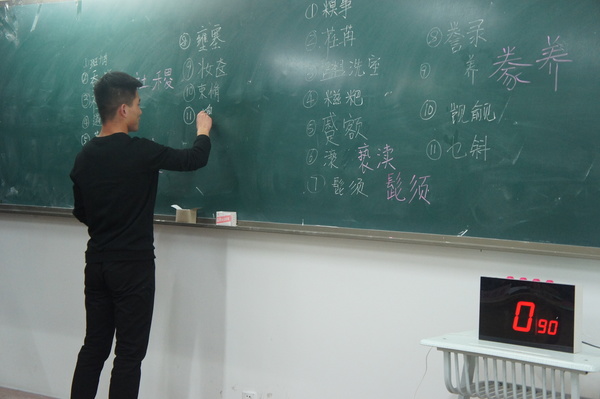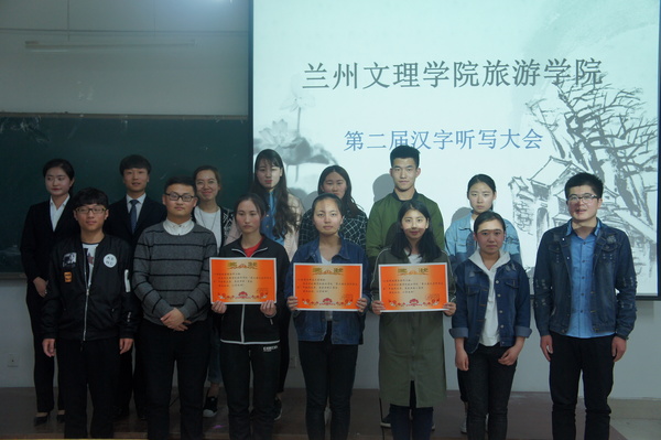 比赛分为词语听写、成语听写和看图猜成语三个环节。赛场上,选手们在答题板上下笔如飞,字迹工整。随着比赛的进行,比分逐渐胶着,场上气氛也热烈起来。最终16级旅游管理本科二班以64分的高分夺得本次大赛的冠军。校员工会主席李小乐做了精彩点评。校、院两级员工会主席分别为获奖班级和个人颁发了奖状和荣誉证书。