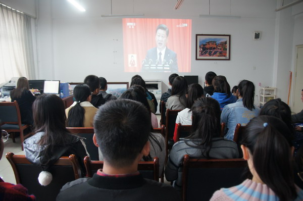 在观看视频的过程中,参会人员都积极学习,认真做好笔记,看到精彩之处,还响起热烈的掌声,都为中国的崛起和强大而感到自豪。此次观看党的十九大开幕式,为全体老师和员工营造了氛围,掀起了学习党的十九大会议精神的热潮,使老师和员工充分认识到学习党的十九大会议精神的重要意义,激励老师和员工以更高昂更激情的精神面貌投入到工作和学习上去,活动意义深远。