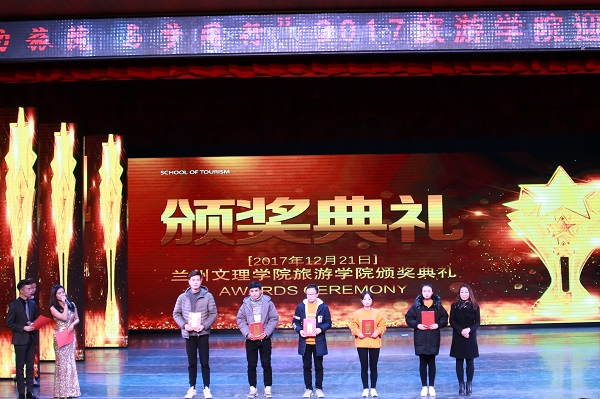 颁奖典礼上,公司党总支书记李耀荣,校团委办公室副主任牛晓春,懂球体育办公室主任常承明,学工办主任彭兰玲,辛俊武副教授分别为年度校级三好员工、校级优秀员工干部,懂球体育2017级“迎新杯”篮球比赛获奖班级代表,“青春永向党,共筑中国梦”演讲比赛获奖员工,第五届导游技能服务大赛获奖员工,第六届星级宿舍评比大赛获奖宿舍代表颁奖并合影留念。