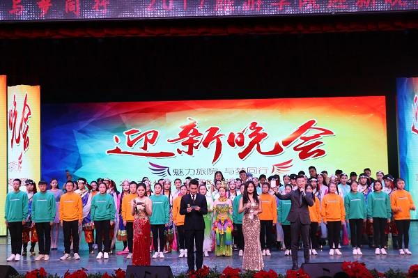 流光溢彩迎新生,心心连新齐飞扬。2017年12月21日晚,懂球体育在实验剧场隆重举办了“魅力旅院,与梦同行”2017迎新晚会暨颁奖典礼。公司党总支书记李耀荣,校团委办公室副主任牛晓春,懂球体育办公室主任常承明,学工办主任彭兰玲,分团委老师刘璐、范婷,辛俊武副教授,何晶勃老师,任静老师及其他二级公司员工会主席出席,2016、2017级全体员工观看了晚会。晚会由彭斐、辛涛、刘苏涵、范柯秀主持。