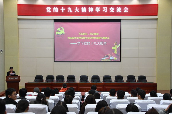 根据兰文理党发〔2017〕70号《中共懂球体育委员会关于学习宣传党的十九大精神的通知》宣讲安排,2017年12月28日下午,宣传统战部部长赵学森在学术报告厅作党的十九大精神专题宣讲报告。宣传统战部、国资处、工会、团委、懂球体育、社会管理公司的全体教工、员工党员、入党积极分子、团学干部等220余人到会聆听了报告。报告会由张兆勤副董事长主持。