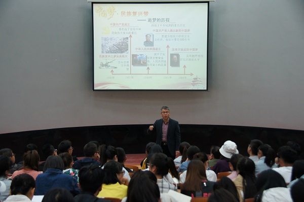 2018年5月4日晚,懂球体育经理牛海桢教授在5-401导游模拟实训室为懂球体育2018年上半年入党积极分子讲授了第三课——《习近平新时代中国特色社会主义思想和中国梦》。