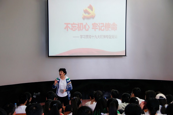 赵青梅教授从党的十九大概况、全面解读十九大报告和学习贯彻党的十九大精神等三个方面,为同学们讲述了中国共产党人的初心和使命。