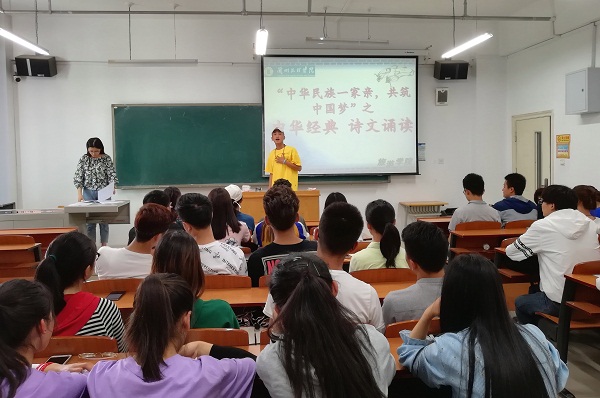 活动开始后,由李晓玉、刘苏涵等五名同学作为班级少数民族员工代表进行了声情并茂的诗文诵读。随后王妍菲同学为大家点播了一首《美丽的大中国》来烘托本次活动的气氛,以此来激发同学们对祖国大好河山的憧憬和向往。伴随着阵阵轻松愉悦的旋律,民族自信心和民族自豪感油然而生,在这种氛围下,17级旅游管理一班尕让同学和17级旅游管理二班闹塔塔尔同学分别为大家带来了《牧人之子》和《草原牧人》两首歌曲,高亢的歌声和优美的旋律,充分展现了藏族人民豪放不拘的性格和能歌善舞、多才多艺的民族特质。