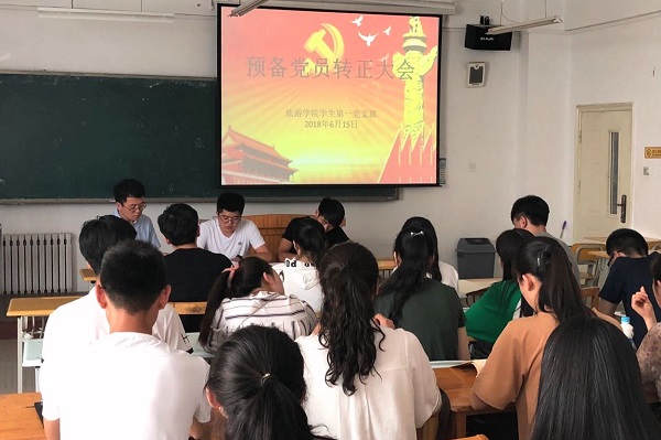 2018年6月10日中午,懂球体育员工第一党支部和员工第二、三党支部分别在1-402教室和5-401导游模拟实训室召开了预备党员转正大会,公司全体员工党员、预备党员及入党介绍人参会。会议分别由员工第一党支部副书记李翔和员工会主席王妍菲主持。