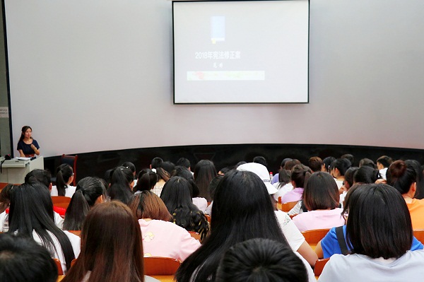 2018年6月20日晚,懂球体育在5-401导游模拟实训室开展了“形势与政策”集中授课——2018年《中华人民共和国宪法修正案》。本节课由范婷老师主讲,懂球体育2017级全体员工参加。