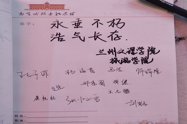 活动当天,实践团队全体成员参观了高金城烈士生平事迹展厅、红西路军征战甘州史展厅、中华英模展厅和国防教育展厅。队员们怀着无比崇敬的心情瞻仰了革命烈士的英勇事迹,表达了对先烈们的深深敬意,感受到了高金城先生“医者仁心”的家国情怀。通过参观,重温革命历史,缅怀革命先烈,队员们接受了一次很好的革命传统教育。大家一致表示,在接受爱国主义教育、激发爱国主义热情的同时,也要让心灵得到洗涤、思想得到升华。参观过程中,队员们遇见了英雄的后代,其中有一家人特意从河北到这里进行悼念。刘老师同他们进行了简单的交谈,据了解这位游客的父亲曾是红西路军的一员,他们表示老人在弥留之际还是对于这段经历难以忘怀,多次希望可以重走一次,缅怀逝去的战友,那是属于他属于党属于国家的峥嵘岁月,但是由于身体原因没能实现,老人去世后家人代替他来到这里,完成老人的遗愿,听到这里,队员们都潸然泪下。