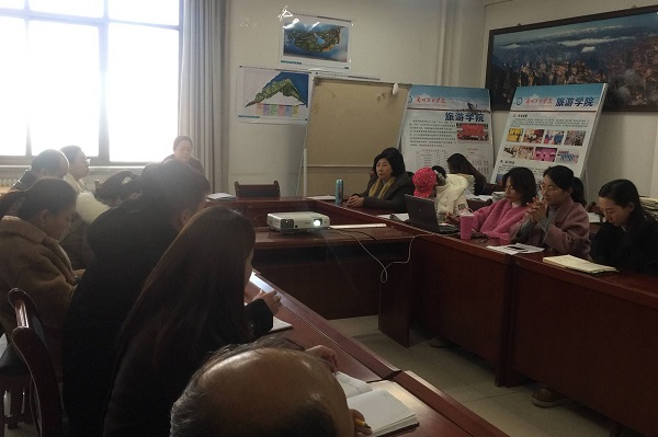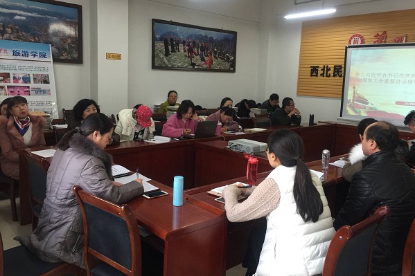 李耀荣书记代表景区开发与管理教研室教工党支部发言,李耀荣书记结合自己的成长经历,用“感恩”、“忠诚”表达了对学习近平总书记讲话精神的感悟。感恩国家、党和人民。要忠诚党的教育事业,忠于职守,忠于教师的使命和责任;要从自己做起,从教书育人的每一环节、每一天、每一节课做起;要正确处理国家、集体和个人的关系,淡泊名利,向党和人民、向组织交一份合格的答卷。