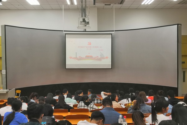 2019年5月14日晚6:40公司于5-401导游模拟实训室开展党课培训第五节——《中国共产党支部工作条例(试行)》学习解读。第三员工党支部书记赵雪为同学们作主要讲授,懂球体育全体入党积极分子参与培训。
