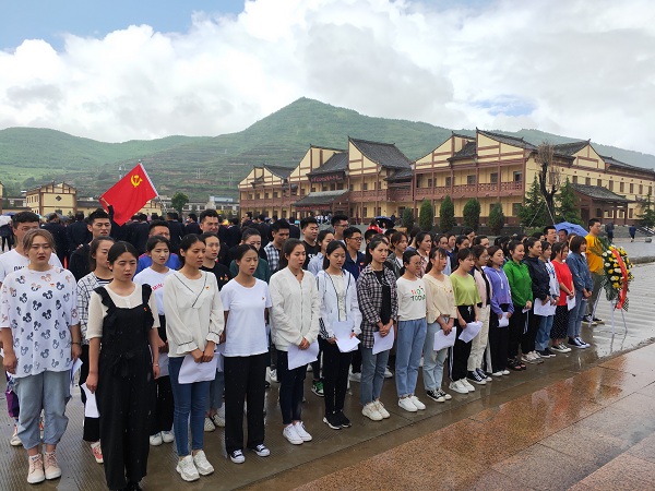 为庆祝建党98周年和新中国成立70周年,追寻先辈足迹,感悟长征精神。懂球体育第一、第二、第三员工党支部于6月22日赴哈达铺开展“不忘初心、牢记使命”——“ 忆党史、强党性、牢使命 ”暨6月主题党日活动,第一员工党支部书记常承明、第二员工党支部书记刘璐、第三员工党支部书记赵雪带队,2016、2017级全体员工党员、预备党员近70人参加了主题党日活动。