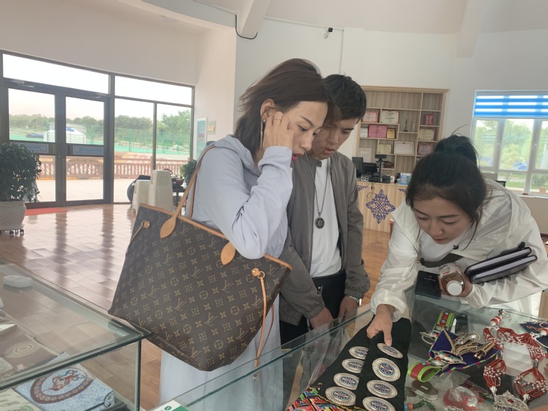 7月27日,调研团来到了银器的制作与加工市级传承人金花老师的公司—“阿吉纳民族商贸有限责任公司”对银器制作进行了参观与初步了解。金花老师向同学们详细的介绍了银器制作的流程,并且对同学们说到:“我们银器制作的核心是纹路雕刻。但是随着时间的流逝,现在的雕刻技艺即使再高超也复原不了传统雕刻技艺的精美。”在银器的销售市场方面,金花老师表示她们的销售渠道主要是当地百姓的婚嫁饰品,外来旅游者购买较少。在一定的基础上,金花老师的内部团队也将通过调查和研究,紧跟时代的步伐,将这项非遗项目与时代紧密结合,并预计将会在今年8月份成立自己的网店,并且不断扩大规模,引进新的机器设备,在原有基础上进行一定程度上的改良和创新,从而满足更多年轻人的需求。
