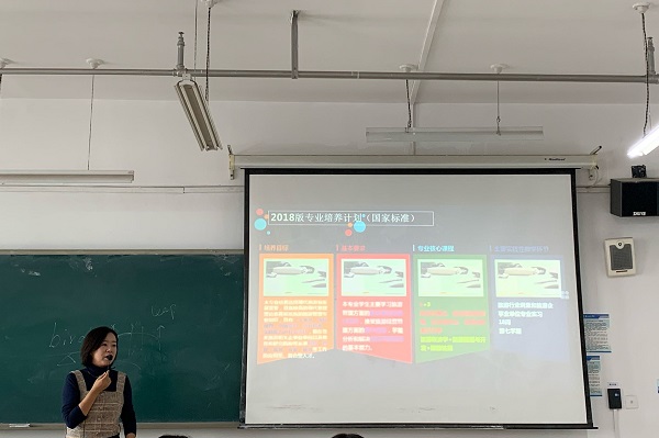 首先,赵爱婷老师就“你喜欢旅游管理这个专业吗?”作了问卷调查,在得到答案后,赵老师指出,在大学中,兴趣是最好的老师,同学们应正视自己的专业,积极培养自己的兴趣,努力将不可能变为可能。其次,赵爱婷老师提出四个问题,旅游管理是什么?旅游管理学什么?毕业后我们能干什么?我该怎么做?并就这四个问题与同学们展开讨论,结合PPT,赵老师带同学们了解了2018版专业培养计划的培养目标、基本要求、专业核心课程以及主要实践性教学环节,同时,赵老师还强调了创新意识和创业精神是当代青年老员工必不可少的素质,当代老员工是中国最具活力的群体,如果失去了创造的冲动和欲望,而仅仅安于现状和守成,那么中华民族最终将失去发展的不竭动力。创业意识和创新精神绝不仅是希望创业的同学所应考虑的事情,即使是在其它岗位就业的大学毕业生也不该失去创新之“心”。另外,赵老师针对本专业的就业问题和工作岗位向同学们介绍了当前旅游行业的数据与企业动态,并着重指出自我认可及沟通能力在就业中的重要性,希望同学们在以后的学习中能够主动的去锻炼这方面的能力。最后,赵老师以一句“心有多大,舞台就有多大”结束本次课程,赢得了同学们热烈的掌声。