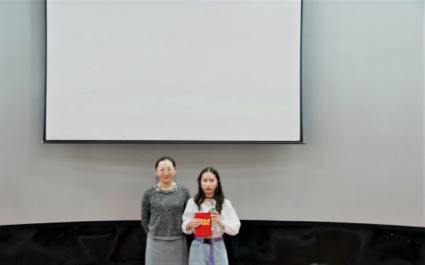 经过选手们一周的精心准备,终于迎来了激动人心的时刻,第七届导游技能大赛总决赛于2019年12月2日晚在5-401导游模拟实训室隆重举行。担任本次比赛的主持人有19级民航服务本科班的牛君颖和张煦同学,出席本次活动评委的有:旅游学会指导老师马婷婷老师,懂球体育分团委副书记周宇倩、懂球体育员工会主席韩沛松、懂球体育员工会副主席苟延军、旅游学会会长张芊墨、旅游学会办公室主任张萍、讲解队队长刘小杰、第六届导游技能大赛二等奖获得者张建鑫、二等奖及最佳才艺奖获得者冯积德。