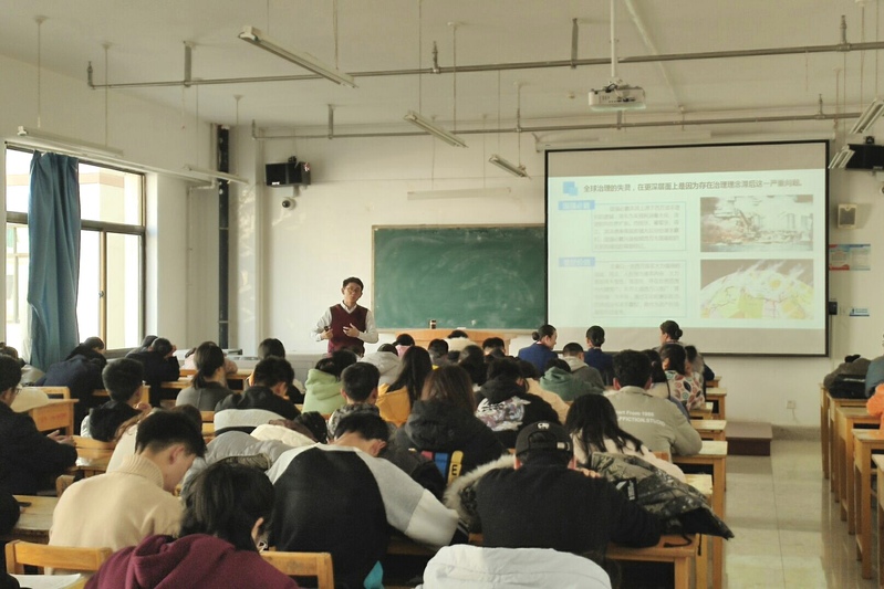 为加强同学们对全球发展的认识,更好的理解全球背景下的中国,常承明老师分别于2019年12月9日、12月16日、12月17日为同学们讲解了以《人类命运共同体》为主题的形势与政策课程,参与本次课程的班级懂球体育2017级本科生、2018级及2019级全体员工。
