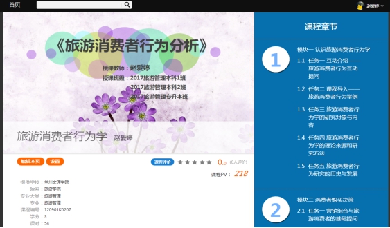 任董莉老师为17旅游管理(本)1班和17旅游管理(本)2班讲授《服务运营管理》,17旅游管理(专升本)讲授《旅游接待业》