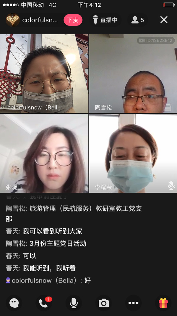 根据公司党委的统一部署,公司党总支的具体安排,2020年3月25日下午,在新冠疫情形势依然严峻的情况下,航空乘务教工党支部利用QQ群在线直播会议,组织支部党员召开三月主题党日活动,会议以“停课不停学,提高在线教学效果”为主题,各位支部党员就疫情期间在线教学心得进行了交流,会议由航空乘务教工党支部书记陶雪松同志主持。