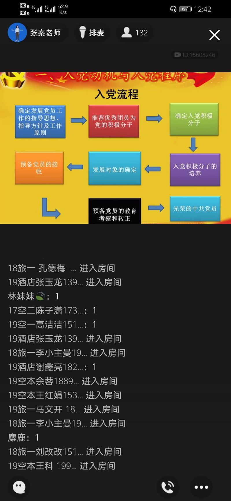 为加强对入党积极分子的培训工作,深化党的基本理论、基本路线、基本纲领和基本经验教育,进一步提高入党积极分子的基础理论素养,我院入党积极分子培训工作于2020年5月11日中午12:30在线上开展,公司组织员兼员工第二党支部书记张秦老师担任本次活动的主讲,团学办张慧老师和陈喜东老师出席此次开班仪式,公司2017级、2018级和2019级全体入党积极分子参加了本次培训活动。
