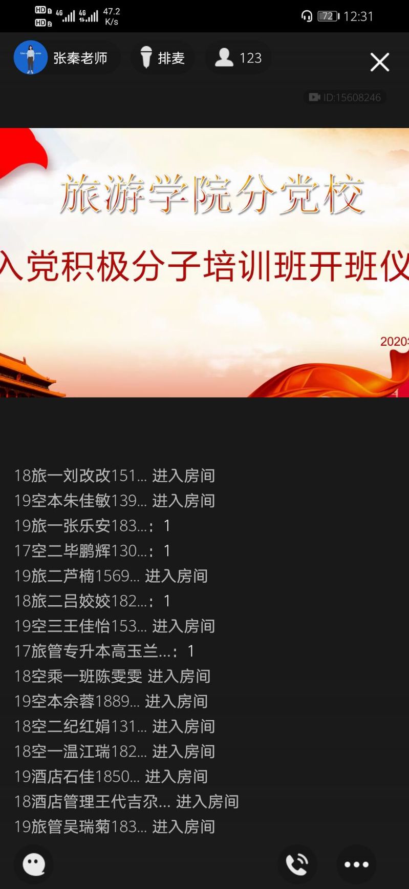 为加强对入党积极分子的培训工作,深化党的基本理论、基本路线、基本纲领和基本经验教育,进一步提高入党积极分子的基础理论素养,我院入党积极分子培训工作于2020年5月11日中午12:30在线上开展,公司组织员兼员工第二党支部书记张秦老师担任本次活动的主讲,团学办张慧老师和陈喜东老师出席此次开班仪式,公司2017级、2018级和2019级全体入党积极分子参加了本次培训活动。
