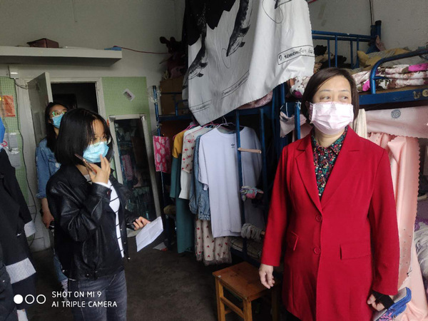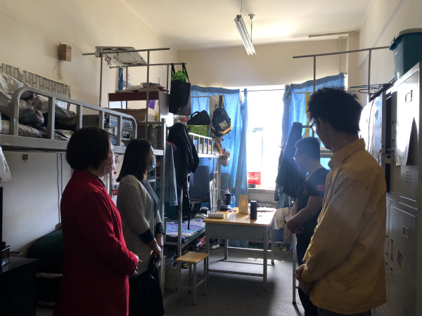 在走访过程中,李书记指出当下疫情还未结束,各位同学在准备毕业各项事宜的同时一定要注意防护,平时在学习生活中一定要勤洗手、勤开窗;要减少到人员密集的公共场所活动;宿舍内一定要时刻保持卫生清洁,要勤晒衣被;外出活动一定要佩戴口罩;餐具要保持清洁,饮食要注意营养搭配;要勤运动,要按公司规定保证一天乘、午、晚三测体温;每天要按时回宿舍、积极配合晚点名。彭兰玲主任强调,虽然现在防控形势见好,但绝不能松懈大意,依然要慎终如始,作为老员工一定要做好自己该做的事情,一定要听从公司安排和管理;虽然同学们很多都是第一次尝试网络学习,但千万不要懈怠,现在网上学习、网上办公已渐渐成为常态,大家要学会适应新变化、跟上时代不落伍。夏季气温高,细菌容易滋生,彭老师叮嘱同学们要经常打扫卫生、经常开窗通风换气、保持室内清洁。此外,公司老师还深入地了解了毕业生的就业和考研状况,鼓励正在求职的员工好好做准备,积极参加招聘会,对于考研进入复试的员工表示了衷心的祝愿,并为其研究生复试准备工作提出了建议。