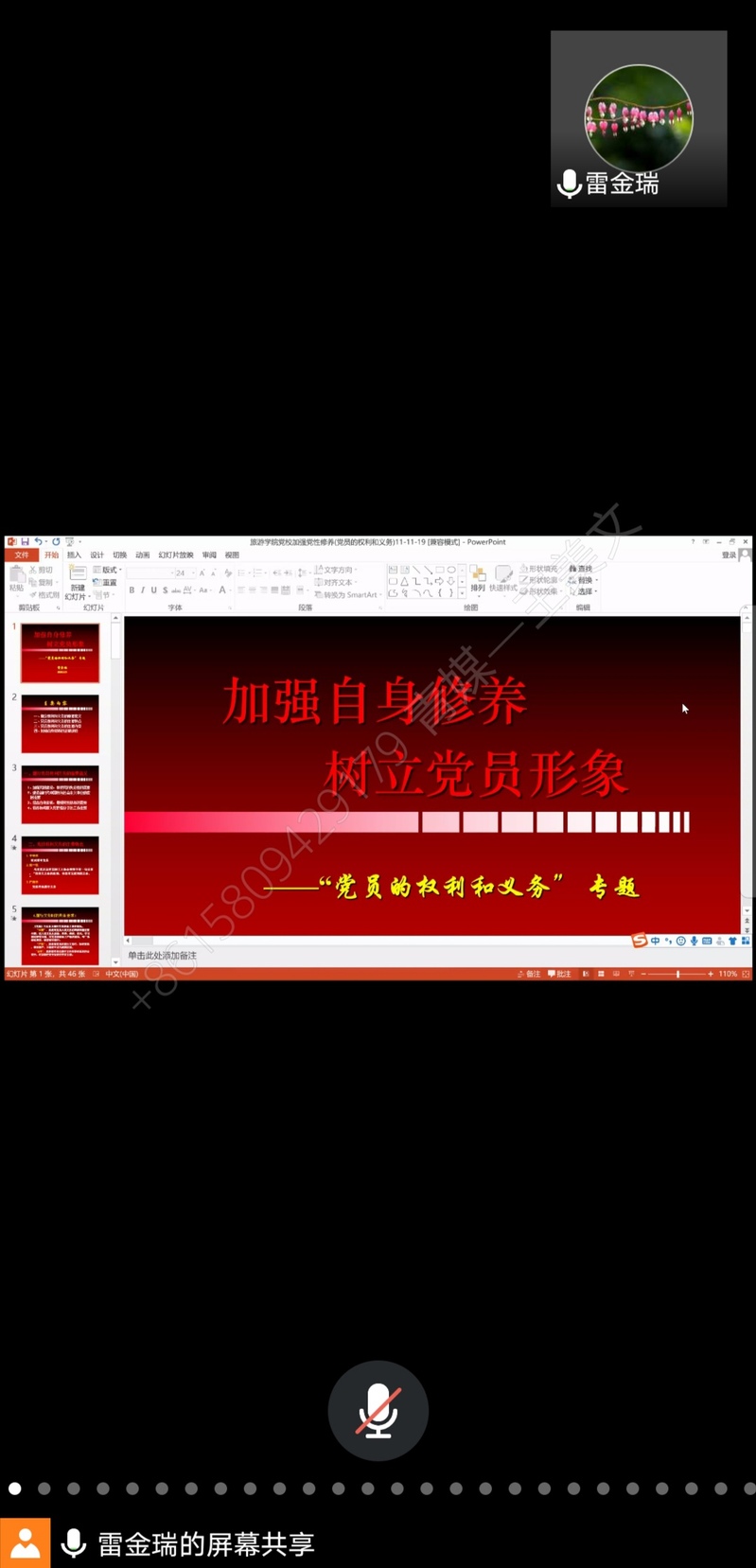 为了加强对员工发展对象的培养,深化党的基本理论、基本路线、基本纲领教育,进一步提高员工发展对象的理论素养,公司于2020年5月13日中午12:30在腾讯会议开展了线上发展对象党课培训课程——《加强自身修养,树立党员形象》,主讲人为雷金瑞副经理,我院全体党员发展对象线上参加了本次课程。