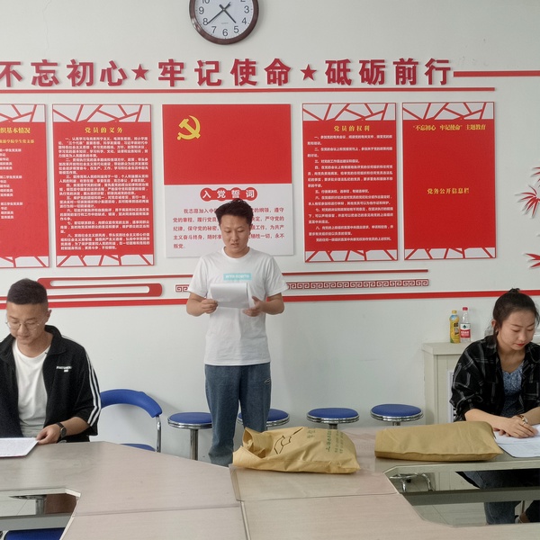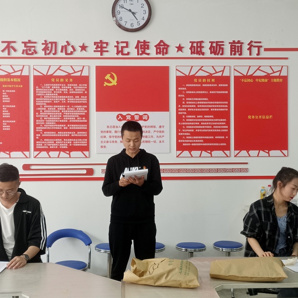 最后,支部书记常承明老师做总结讲话。他要求全体人员认真履行《党章》规定的各项义务,进一步增强党员意识,更加严格要求自己,要不断加强理论学习、关注时事新闻,提升自身的政治素养,牢记党员身份,在思想上、行动上时刻与党组织保持一致,在学习工作中进一步发挥党员先锋模范作用,努力做一名合格的共产党员。