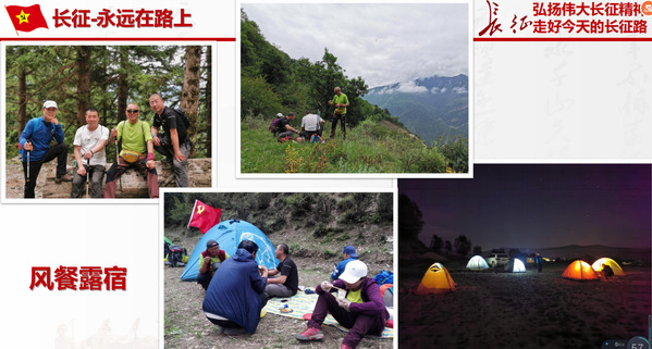 阙老师从他的亲身经历出发,讲述了长征沿线农村这几十年发生的变化,讲述了老百姓真实的声音和感受,80多年前的红军长征是一次奇迹,80年后祖国的建设发展又创造了奇迹。梁照辉老师从重走长征路的经历分享了他对“坚持”的感悟,长征精神有很多内涵,最重要的一点就是坚持,有理想信念的坚持,有正确领导的坚持,去挑战自己的极限,去实现新的可能,这是长征精神用事实告诉我们的真理。耿玉海从他以一个资深户外领队走长征路的经历分享了他对长征精神的感悟,红军战士的平均年龄20岁左右,能在每天面临敌人攻击、缺吃少穿、环境恶劣的环境下一年时间坚持走完25000里长征,作为一个资深的户外运动者他自己去实践了两天一夜徒步100多公里的纪录,现代的徒步装备下团队成员多人都达到体力极限甚至无法坚持,红军战士能够坚持以这样的速度走完长征,真的是一种伟大的精神,“神兵天降”的团队速度和能力。于长友老师年过花甲已经退休,也是一位旅游从业者,他分享了他在重走长征路上的所见所感,当他讲到700多名红军战士在走出草地后,背靠背地坐在班佑河边,牺牲在草地边缘的故事,热泪盈眶,我们无法体会当年红军战士那种走过草地对胜利曙光的渴望,那种几百人团结在一起的生死与共,但仅仅是一座纪念碑,一个故事就让我们对红军战士肃然起敬,大爱无疆,有了这些牺牲者和奉献者,才有了我们现在的和平和安稳。