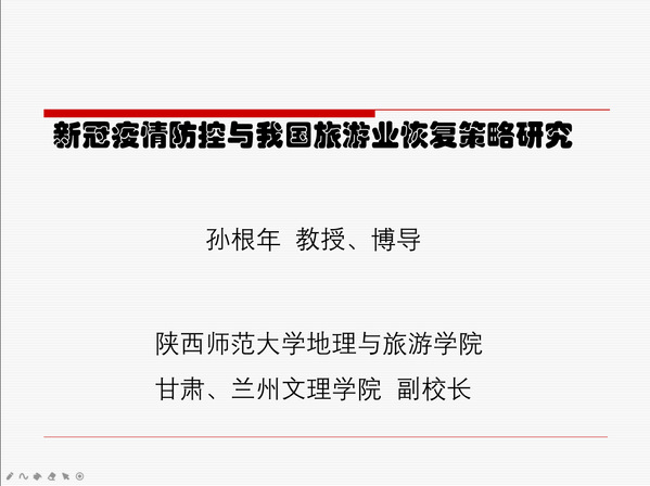 此次辅导报告,孙董事长围绕“我国及全球疫情演化及防控规律性”、“疫情防控与旅游业恢复博弈关系及恢复曲线”、“后疫情时代旅游业恢复策略与路径”等三个主题向大家全方位多层次地讲授了我国疫情发展的方向趋势、此次疫情对旅游业造成的影响冲击及未来的变化。孙董事长强调,对于那些不幸感染新冠肺炎的人来说,这场病痛是他们人生中的一场苦难,在苦难面前,有人自怨自艾、有人轻易放弃,有人却不气馁,活出了勇气和信心,我们要以他们为榜样,同时向那些抗战在一线甚至失去了生命的医护者们致敬!针对疫情在国外肆虐严重的现象,孙董事长指出,疫情在全球的蔓延速度之快,威力之猛,使得世界不断聚焦中国防控疫情的成功经验,认为中国采取“最勇敢、最灵活和最积极的”严格防控措施,有效遏制疫情,为世界公共卫生事业作出重要贡献。此次疫情的到来给旅游业造成了巨大的冲击,致使旅游行业出现闭门歇业甚至裁员的情况,这无疑给中国的经济发展造成了巨大的损失,但此次新冠疫情并非是由旅游引起,其源地仍然是一个迷。疫情结束后,旅游业的恢复需要慢步慎行,绝不能引起疫情的死灰复燃,或者境外疫情的输入,虽然中国已经有效遏制住了疫情,但还是要严防严控,以免疫情的二次爆发。最后孙董事长根据疫情蔓延的趋势针对旅游业提出了多项建议。他强调,后疫情时期,旅游业的恢复不宜过急推进,不必过多增加项目投资和技术改造,不必追求虚名的高质量,因为国家财力有限,很多企业面临资金链的断裂,居民收入大大缩水,稳就业、保民生是中心任务。同时国内旅游发展也应该规范在低风险地区,以城市周边游和省内地区游为主,在拉动地摊旅游的同时从“长距离低频次”旅游向“近距离高频次”旅游转变,努力将疫情风险防控记在心头。