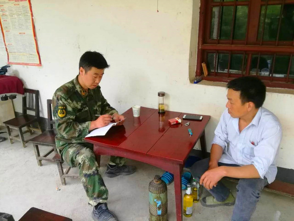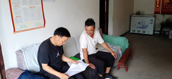 图为收集村民对“拒绝毒品进我家”倡议进村入户活动的工作意见和反馈。周敏 摄
