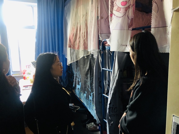 李耀荣书记和各位团学办老师带领随行人员在十二号楼下集合,分为三组后对不同的宿舍楼展开检查。本次查宿活动在慰问大一新生的同时着重对大三员工寝室卫生情况和整洁程度进行仔细检查。活动过程中,李耀荣书记叮嘱同学们床铺、书桌需保持干净整洁。相对来说绝大部分宿舍卫生干净整洁,物品摆放整齐,地面干净,空气清新,给人温馨舒适的感觉。同学们也十分重视查宿工作,但个别宿舍仍有垃圾堆放、不叠被子、桌面物品摆放不整齐等现象。针对这种现象,彭兰玲老师对宿舍长及成员进行了批评教育,希望以后杜绝这种行为的出现,营造一个舒适的环境。宿舍是同学们温馨的家园、幸福的港湾,为此我们应该积极营造健康良好的宿舍氛围,创造整洁舒适的宿舍环境,真正将宿舍文明落实到日常生活中。