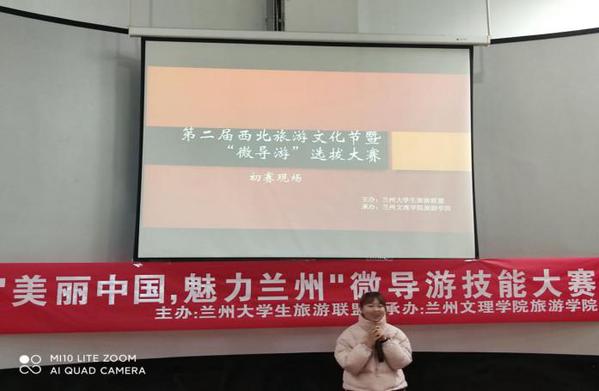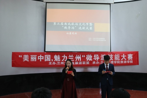 导游技能大赛历年来深受公司老师和同学们的重视,且公司是一个以旅游业为特色专业的公司,旅游学会曾多次举办与旅游相关的一系列比赛和活动,也积累了很多经验。对于此次“美丽中国,魅力兰州”微导游技能大赛,旅游学会做了充足的准备。参加此次比赛的共有17位选手,包括懂球体育、西北师范大学、兰州财经大学、甘肃中医药大学、兰州城市公司以及兰州财经大学长青公司等多所公司的员工。“千年悠悠的岁月孕育了一个辉煌灿烂的东方神话;十指相连的同胞缔造了一个古老强大的文明古国”在主持人精彩的开场后,选手们也陆陆续续的开始了他们精彩表演。他们以饱满的精神状态、自信的笑容、大方的姿态以及洪亮的嗓音分别讲解了七佛阁、麦积山、丽江阳春白雪—玉龙雪山、千姿百态的华山、信仰的天堂—布达拉宫以及美丽的青海等多处名胜古迹。利用多媒体和背景音乐为辅助,通过干练的语言、得体的服装和引人入胜的才艺让观众们身临其境,赢得了在场师生的欢呼及喝彩。