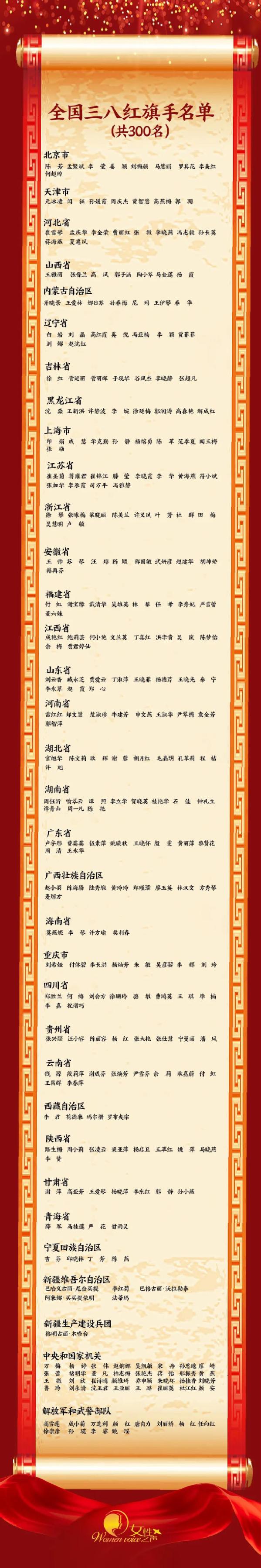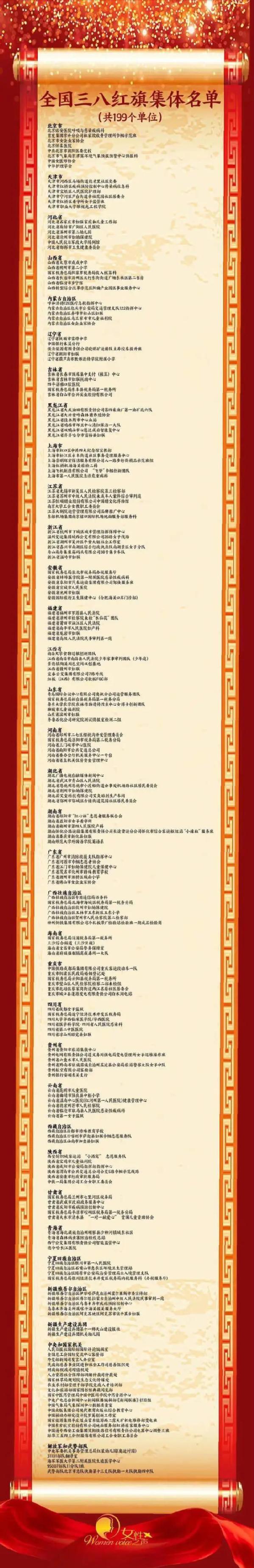 为表彰先进,树立榜样,团结动员广大妇女积极投身全面建设社会主义现代化国家新征程,近日,全国妇联公布了2020年度全国三八红旗手标兵、全国三八红旗手、全国三八红旗集体名单,授予陈岚等10人全国三八红旗手标兵、陈芳等300人全国三八红旗手、北京佑安医院呼吸与感染疾病科等199个单位全国三八红旗集体称号。