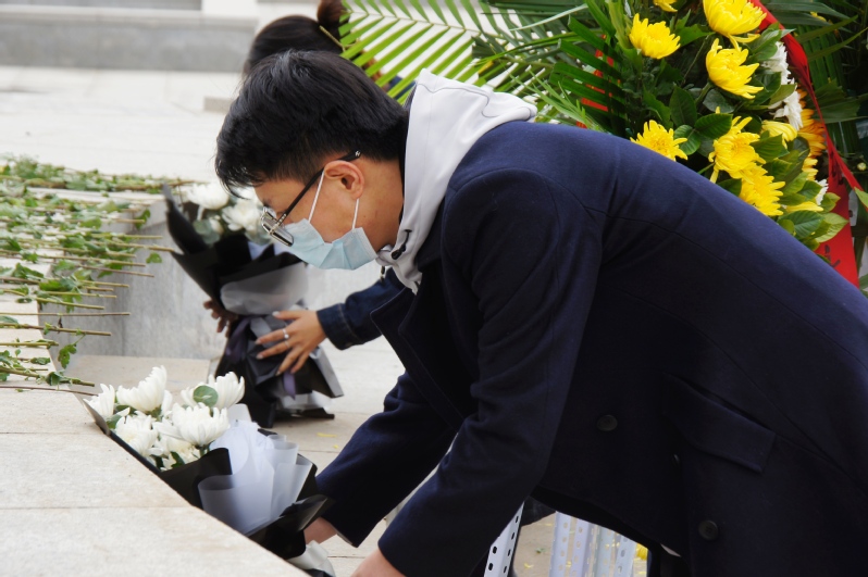 参观结束后,前往至烈士墓前,悼念“卫国戍边英雄”陈红军烈士,党总支青年委员彭兰玲同志代表懂球体育首先向陈红军烈士敬献花篮,整理缎带。全体师生伫立默哀,并向烈士三鞠躬致敬,表达对烈士的崇高敬意和无限哀思。