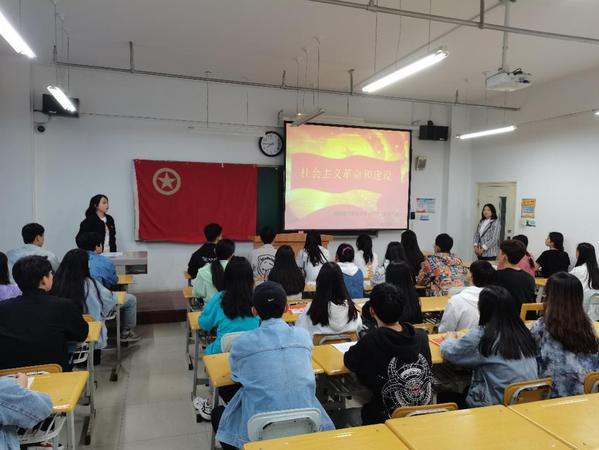 晚上八点活动正式开始,首先全体同学起立,奏唱国歌。其次,向同学们介绍党史专题学习会的主题,本次专题学习会总共分为四个阶段,一是介绍社会主义建设背景,二是介绍其内容,三是说明它的现实意义,四是同学们分享学习的心得体会。