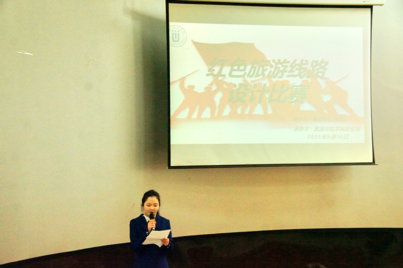 此次比赛最终筛选出5名选手,精心设计别具特色的旅游线路,并用不同的方式展开讲解。来自旅游管理专业的马小村同学设计的红色路线主要围绕是临沂红色旅游资源,并对华东革命烈士陵园、中共中央山东分局旧址等多个地方进行了分享讲解。空乘专业糟亚丽同学开场以导游的身份进行讲解,让大家身临其境,带领大家走进康乐红色旅游路专线,同样来自空乘专业的郑涵同学,结合红色党史小故事,呈现出“重走金色长征路—张掖”红色旅游路线,并依据不同的旅游路线设计出定制服务,如穿军装、带军帽,重走长征路。旅游管理专业安淑艳带来主题为“浴血河西,赤色丝路,西征长都”的旅游线路。这条由古浪-临泽瓜州-星星峡的旅游线路经过河西走廊,让我们在领略红色文化的同时也领略了丝路文化。最后一位空乘专业的梁婷婷同学以介绍自己家乡方式向我们介绍了红色旅游胜地庆阳,采取提问的方式互动,让大家有强烈的参与感。