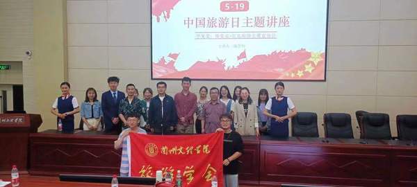 陶雪松教授宣讲了主题为《甘肃省红色旅游及经典景区研学》的讲座,首先陶教授带领大家一起朗读了《游天台山记》中的一段话,提到中国旅游日形象口号是“爱旅游,爱生活”,接着从红色旅游概念解析、甘肃红色资源的丰富内涵和时代价值、甘肃的国家红色旅游经典景区研学三个大的方面展开讲述,其中讲到,红色旅游的内容体系经过了三个阶段的发展和延伸,红色遗址遗迹数量众多,覆盖面广,并详细介绍了甘肃省的16个红色旅游景区及其背景。之后就如何更好的打造红色旅游景区、乡村提出了针对性的建议。最后,陶教授和在场人员热情的朗读《七律·长征》后,大家合影留念,本次5·19中国旅游日红色旅游主题讲座圆满结束。